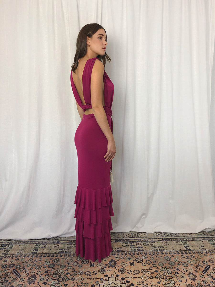 ✰ You can wear the Fara Infinity Dress in a thousand ways thanks to its two long straps. You can wear it with a Top underneath or a Torerita and achieve even more models. Comes with interchangeable cream pom poms with gold trim ✰